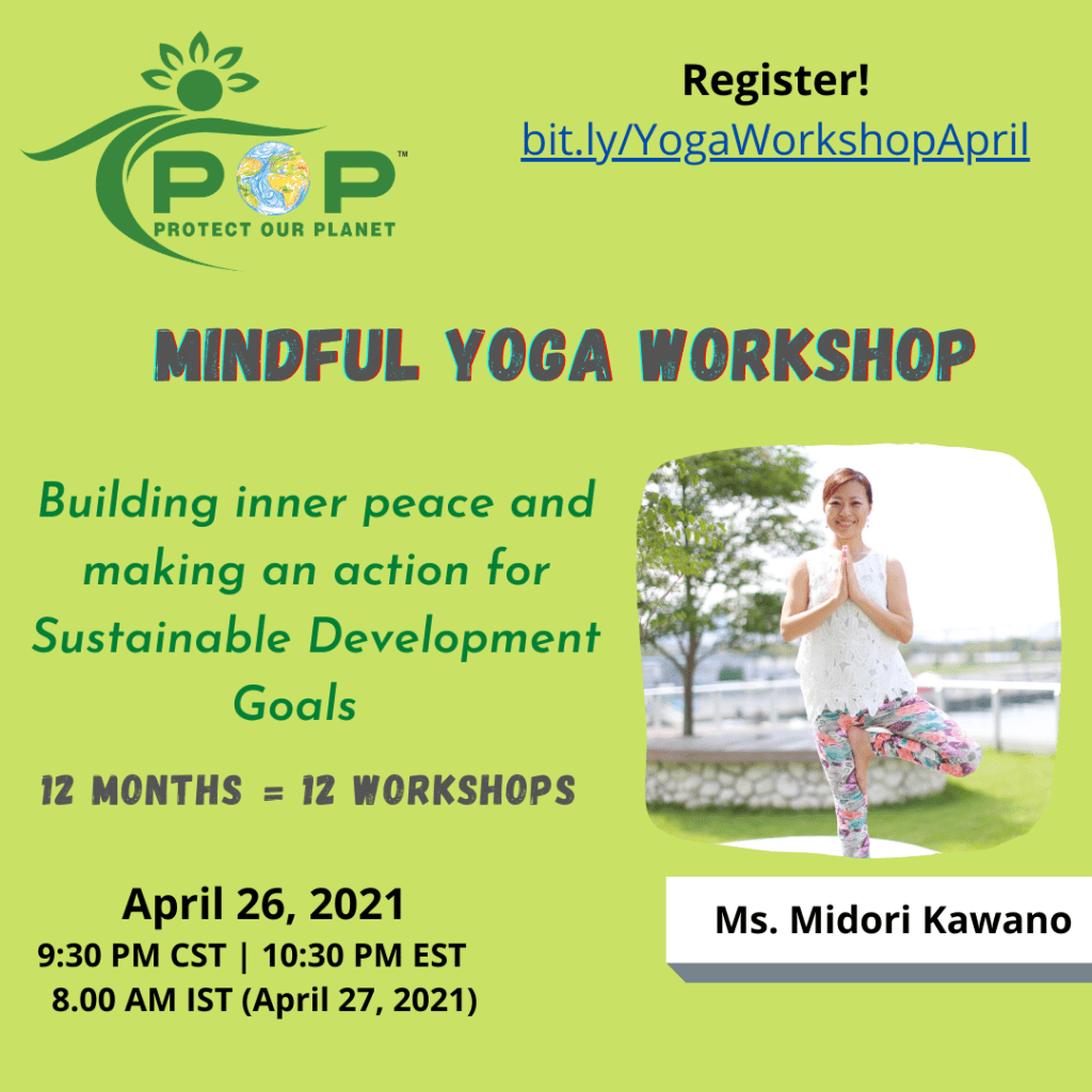 2021年4月27日(火)11:30~12:30開催の「第4回:POP Mindful Yoga Workshop」の登録サイトが公開されましたのでお知らせさせてくださいませ。