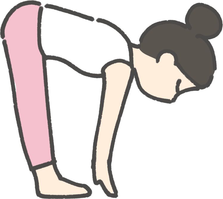 Step 2 息を吐きながら、骨盤から上体を前傾させていき、腰が痛まない範囲で前屈します。腰は穏やかに伸ばします。必要に応じて膝を曲げてください。