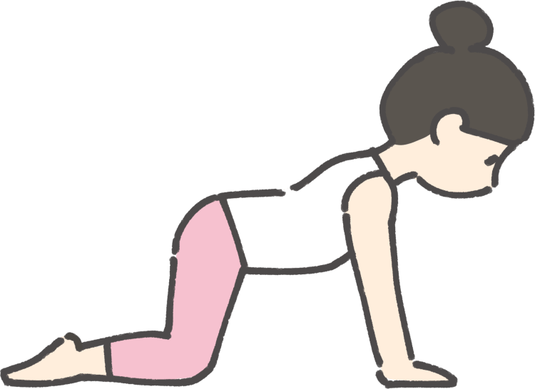 ビティラーサナ(牛のポーズ)は、背骨のウォームアップとなるやさしいポーズです。猫のポーズと合わせて連続的に行うことで、呼吸と動きをシンクロさせる練習にもなります。